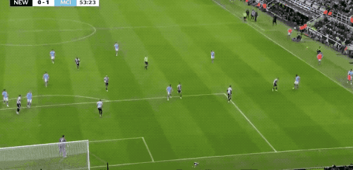 下半场开始仅仅4分钟,阿克45度传中,皮球打在戈登的两腿之间,差点造成纽卡10号的自摆乌龙。